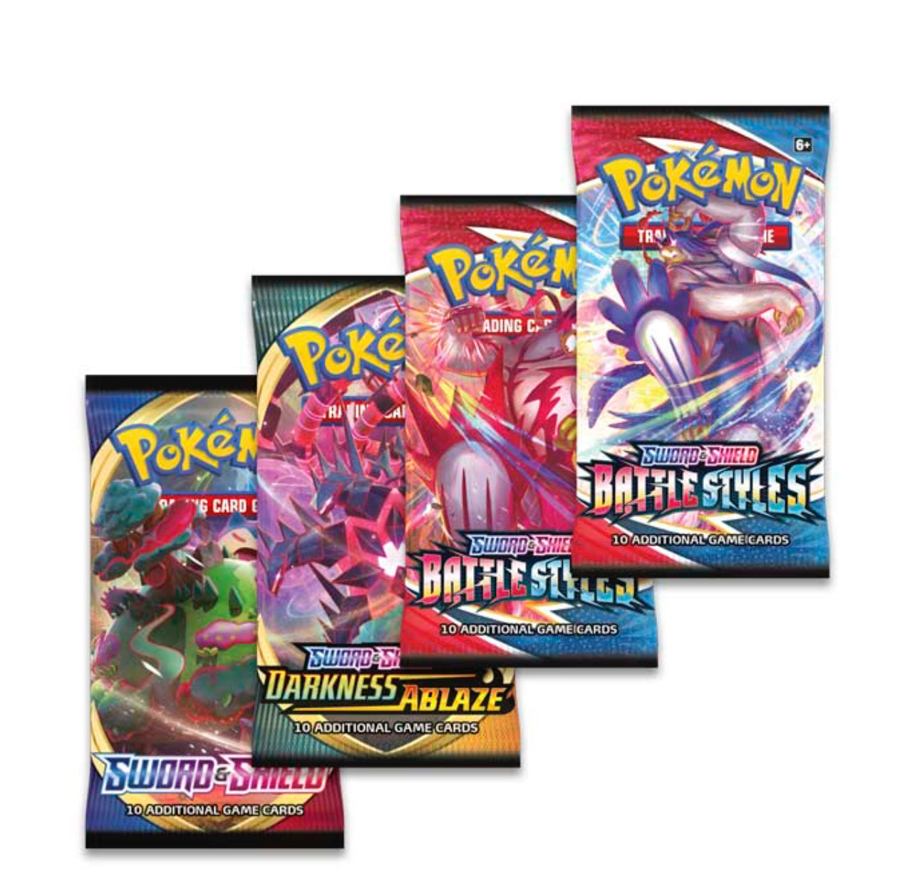 - 4 Pokémon TCG booster packs (Each Sword & Shield Series and Sun & MoonSeries booster pack contains 10 cards and 1 basic Energy. Each XY Series booster pack contains 10 cards.)